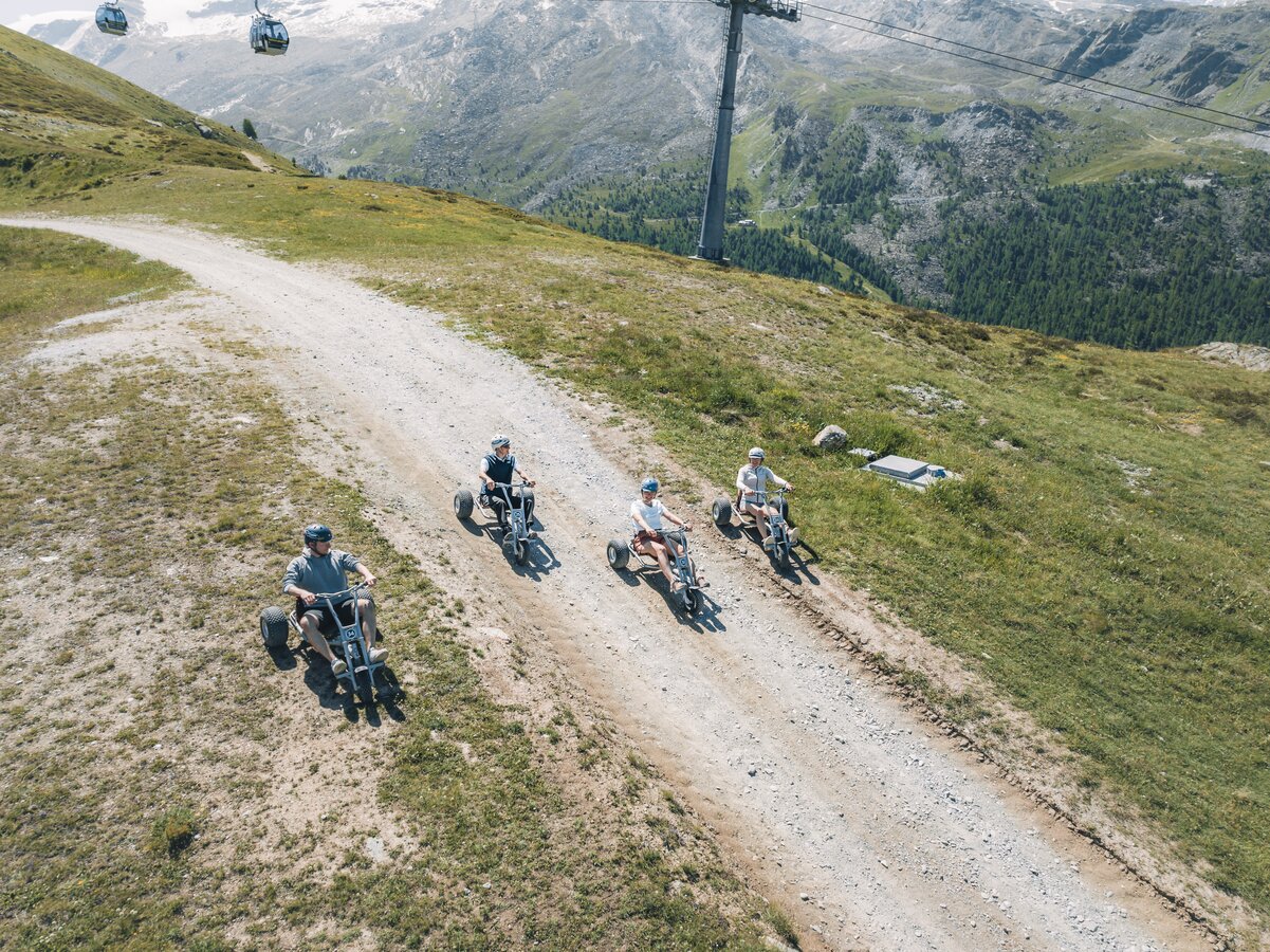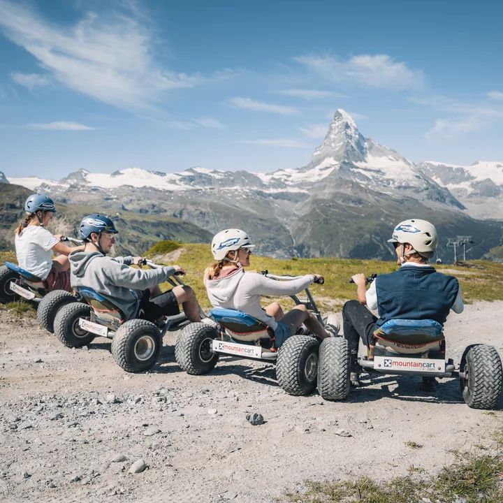 Wer Abenteuer liebt, sollte sich bereit machen für das ultimative Adrenalin-Erlebnis mitten in der Zermatter Bergwelt. Auf den dreirädrigen Gokarts kann mit bestem Blick auf das majestätische Matterhorn den Berg hinunter gerast werden. Ob mit Freunden oder Familie - Spass ist garantiert.
