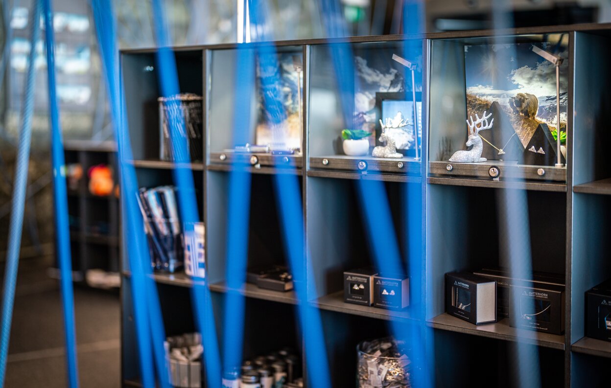 Einkaufen im Paradies: Im Shop neben dem Restaurant finden sich die richtigen Mitbringsel für die Lieben daheim, zum Beispiel ein Wein aus den Alpen, der in höchster Höhe gelagert wird oder doch lieber ein schönes Souvenir aus der Kollektion der Zermatt Bergbahnen.
