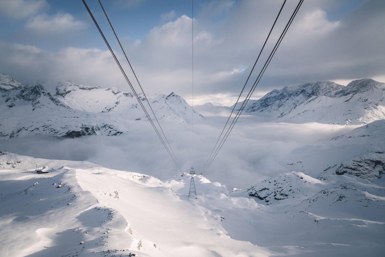 Wenn Visionen zur Realität werden. Nach jahrelanger Pionierarbeit ist die ganzjährige Verbindung zwischen dem Weltkurort Zermatt und dem italienischen Ort Breuil-Cervinia Tatsache. Ein Erlebnis der Extraklasse – schwebend über die faszinierende Berglandschaft Italiens und der Schweiz mit Ausblick auf das unverkennbare Matterhorn.