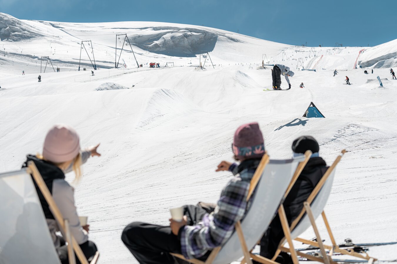 Auf 1‘200 Metern Länge gibt es sechs kreative Lines für alle Levels, auf denen jedes Freestyler-Herz zum Höherschlagen gebracht wird. Die langen Lines, lässige Obstacles, smoothe Transitions, dazu der einzigartige Ausblick, die Sonne und – Gletscher sei Dank – perfekter Naturschnee machen jede Sesh zum Hochgenuss.
