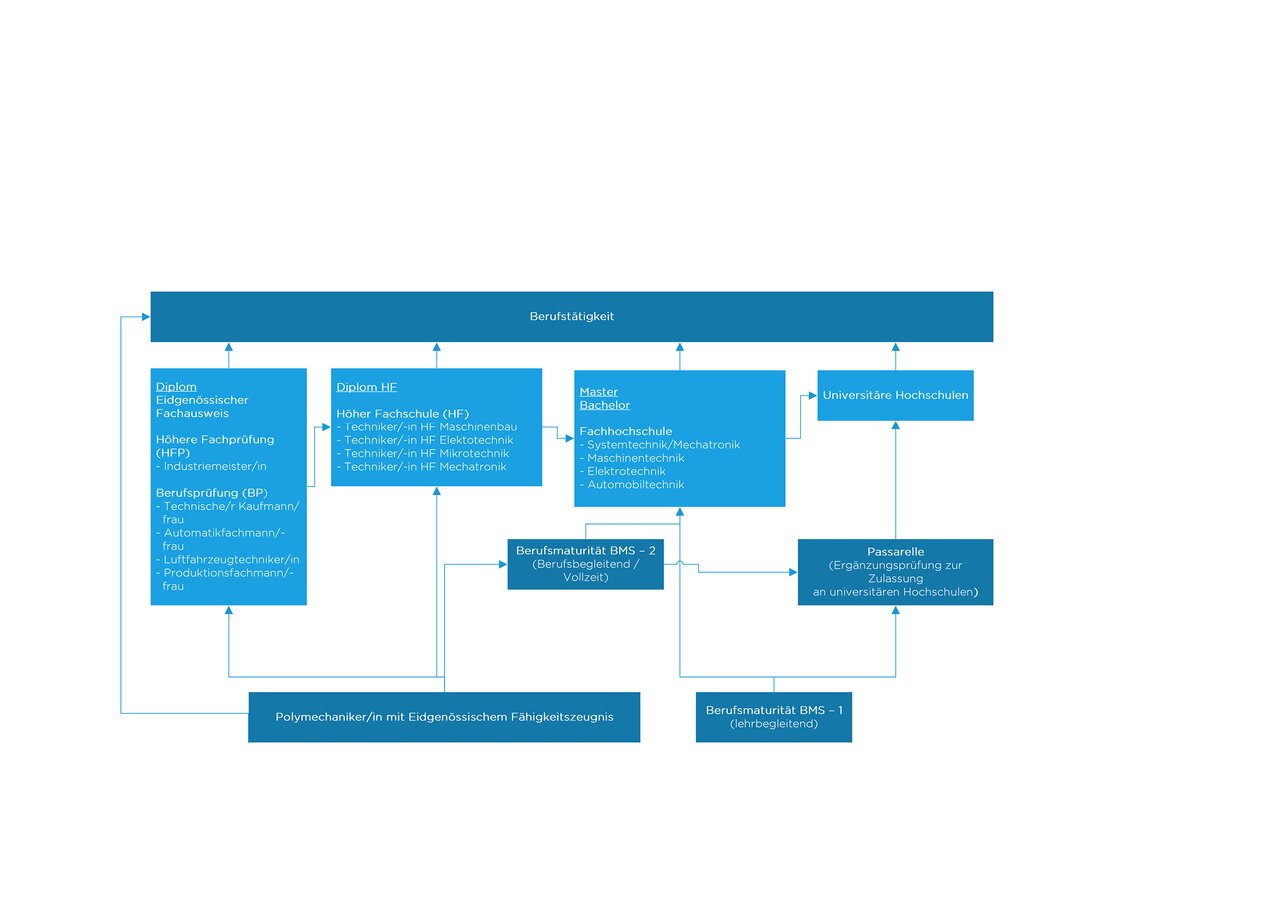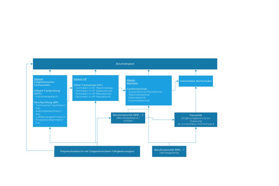 Mit der Entscheidung, eine Lehre bei den Zermatt Bergbahnen zu beginnen, stehen dir viele Türen für deine zukünftige berufliche Laufbahn offen. Nach einer hochwertigen Ausbildung Polymechaniker/in EFZ oder Produktionsmechaniker/in EFZ, eröffnen sich verschiedene Weiterbildungsmöglichkeiten, um dein Wissen und deine Fähigkeiten kontinuierlich zu vertiefen und deine berufliche Entwicklung voranzutreiben.