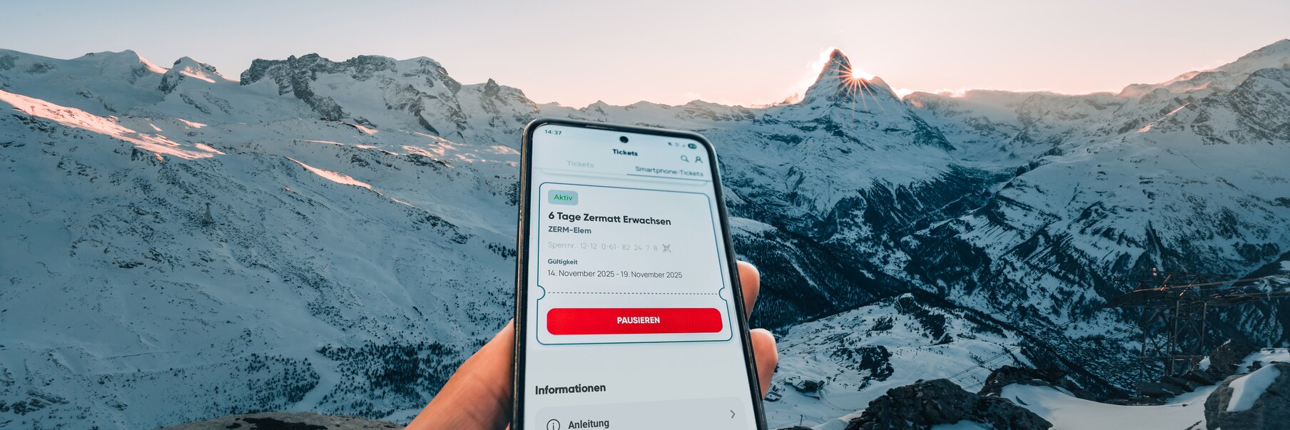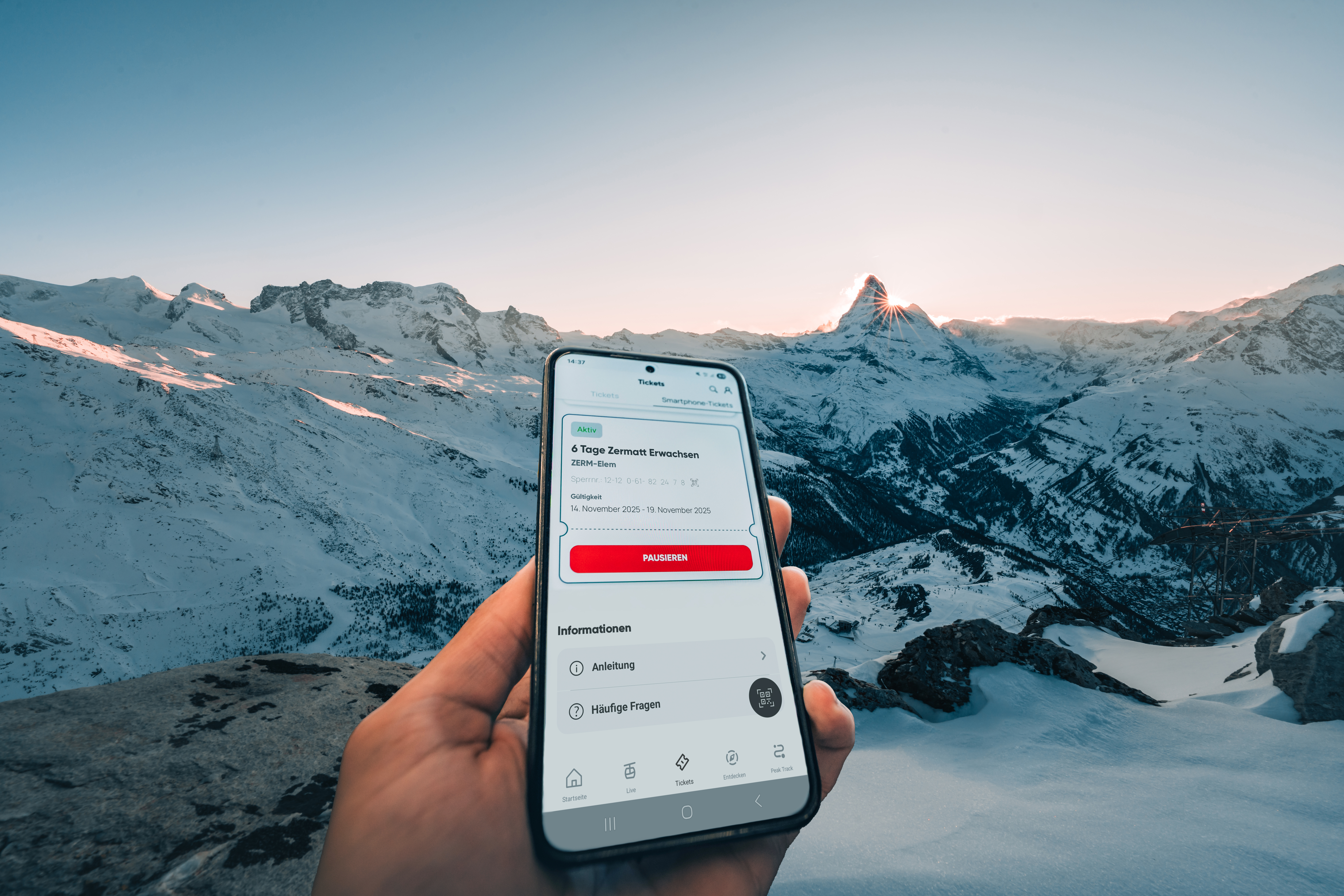 Zermatt setzt neue Massstäbe in Sachen Digitalisierung: Als erste Destination der Schweiz ermöglichen die Zermatt Bergbahnen, die Matterhorn Gotthard Bahn / Gornergrat Bahn sowie Zermatt Tourismus den vollständig mobilen Zugang zum Skigebiet – mit dem Smartphone als digitales Ticket.